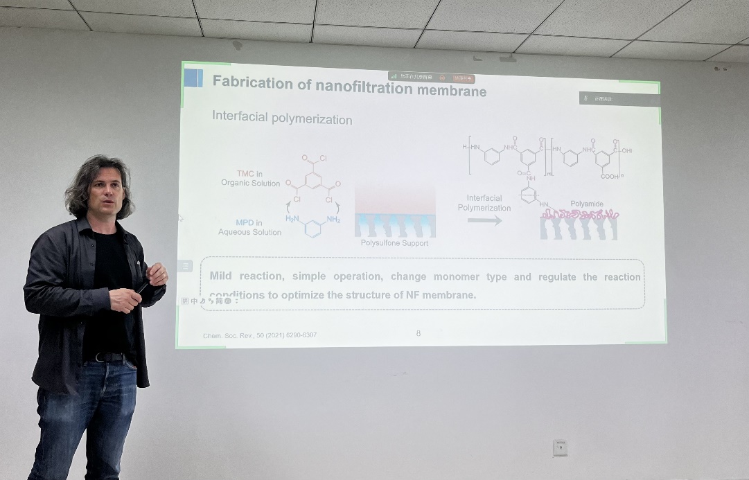 参加交流活动的学院老师和同学们积极参与讨论,Bart Van der Bruggen教授和赵严博士一一给与了热情解答。通过此次会议,帮助av影片 师生对界面聚合技术制备聚酰胺(聚酯)膜在疏松纳滤方面的应用、通过电场辅助离子控制设计高效Li+选择性膜的制备和应用有了更深刻的认识。