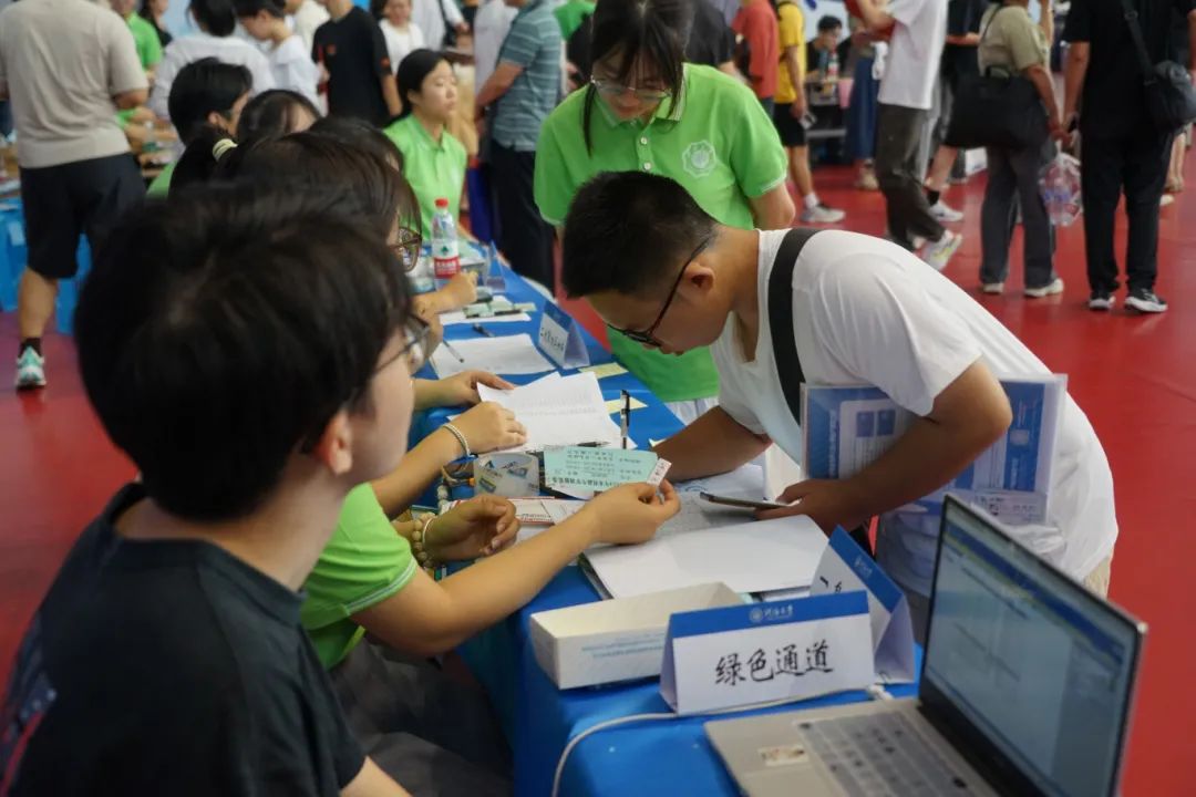 迎新现场,老师们和志愿者们以饱满的热情和专业的态度,逐一审核新生报到材料,耐心细致地解答新生提出的各种问题,帮助他们顺利完成入学手续办理。从报到登记、材料提交,到校园卡领取、物资发放,每一个流程都井然有序,体现出河海材料人严谨细致、高效务实的精神风貌,2024级本科生新生也在报到现场拍照记录下了这一难忘时刻。