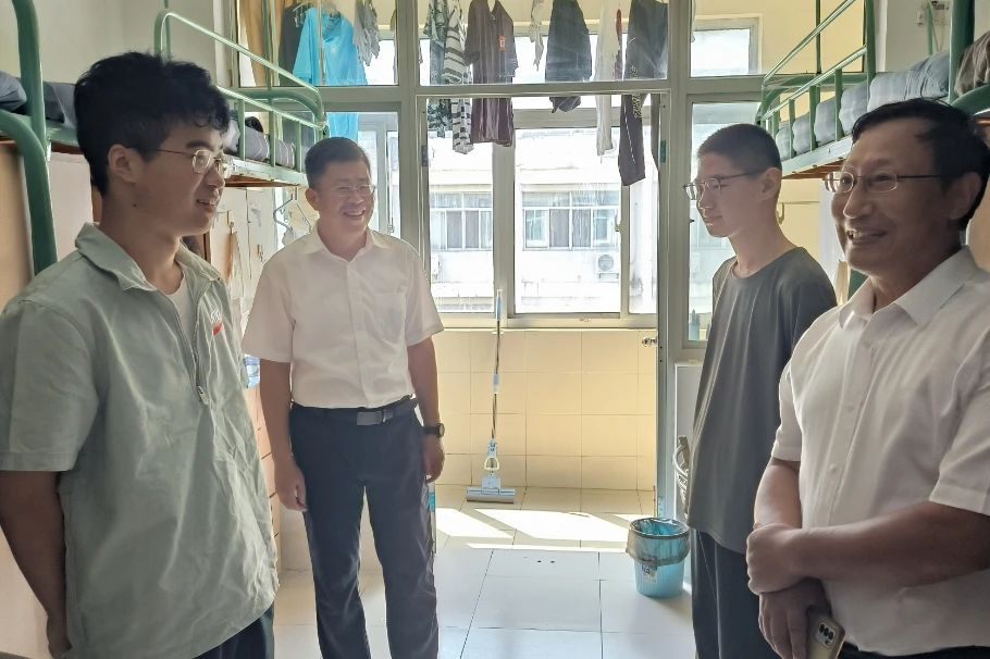 学院党委书记陈伟刚,院长赵永好,副院长宋丹,副书记、副院长辛绍权与新生辅导员温泽来到宿舍看望新生,与新同学和家长们亲切交流,询问他们对av影片 的第一印象和学习生活感受。