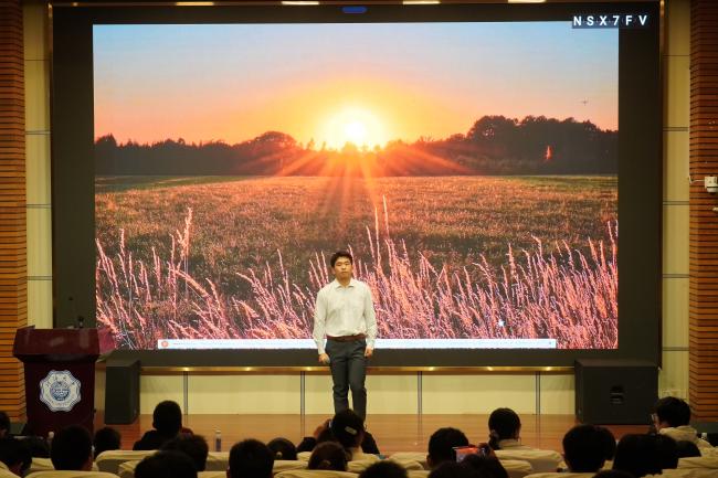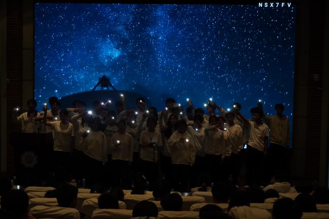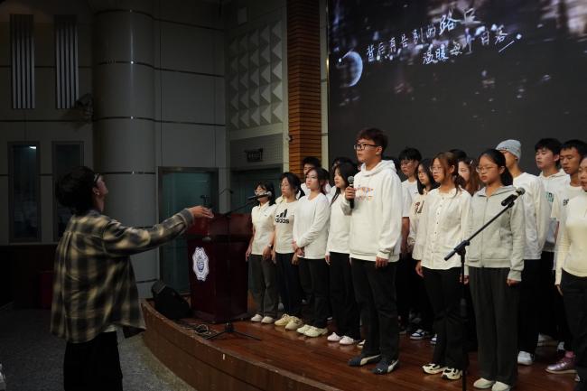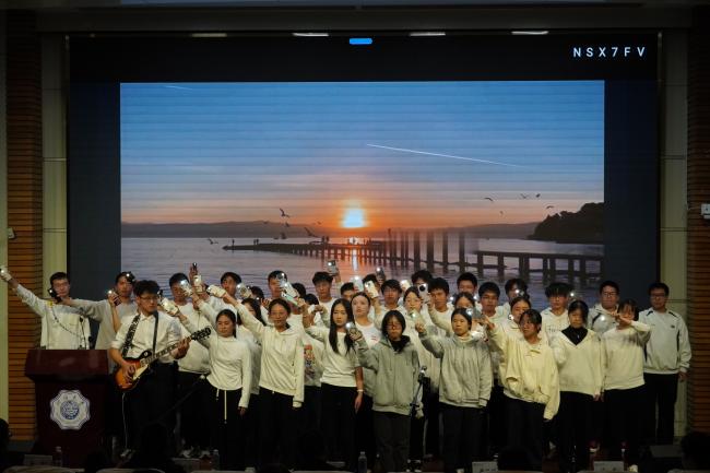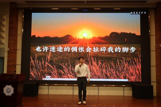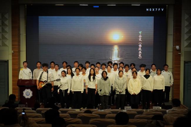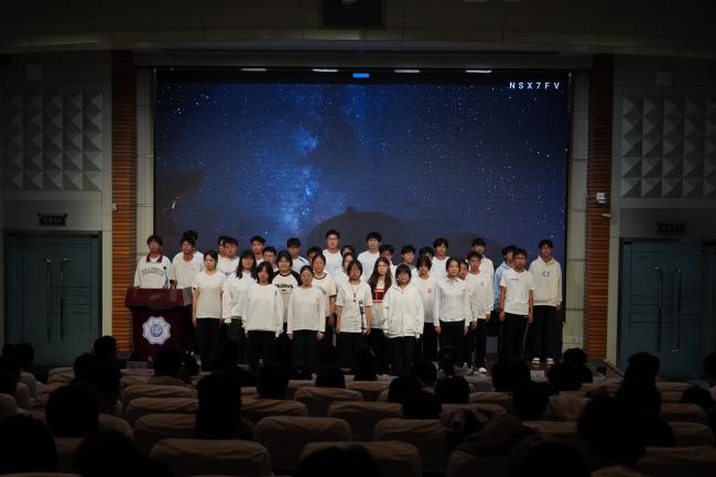 熟悉的前奏响起,材料四班的同学们以清澈的声线,唱出了对未来的追寻与初心的坚守。这首歌仿佛是对百十载河海历程的呼应,一代代河海人正如那夜空中最亮的星,指引着新的河海学子砥砺前行。合唱寄托了材料学子在求学路上不忘初心、砥砺前行的坚定信念。他们会带着无畏和热情去成为自己的行星。