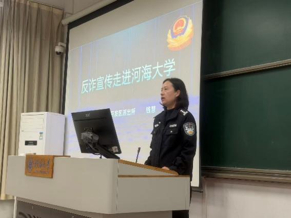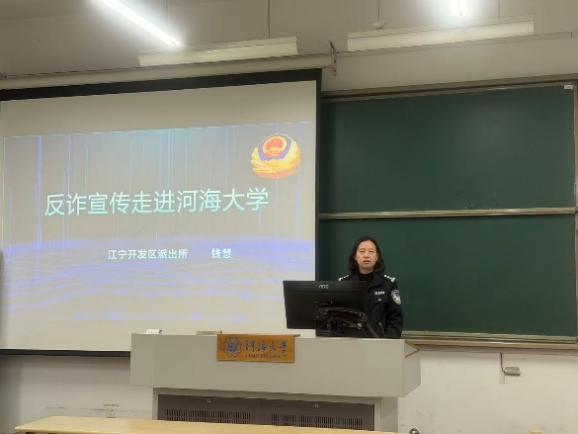 为切实提升在校学生的反诈防诈意识和自我保护能力,有效遏制校园诈骗案件的发生, 11月17日,av影片 特邀南京市江宁开发区派出所民警钱慧走进校园,为2022级在江宁校区全体本科生带来了一场内容详实、案例鲜活的反诈骗主题宣讲活动。